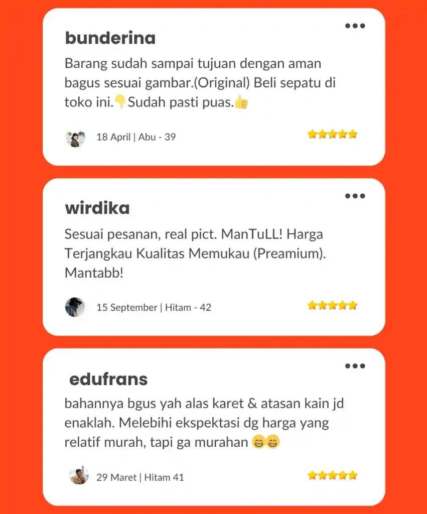 Dengan jahitan yang kuat dan rapi, desainnya compact, & sol yang empuk memberikan kenyamanan disetiap langkah